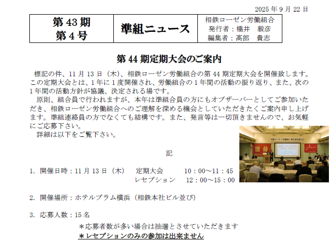 第44期定期大会への参加者募集!